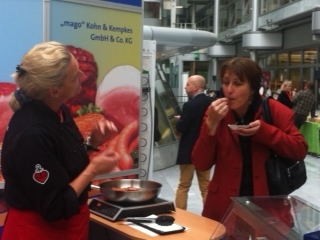 Die Börse startete verspätetet - wegen des Megastau auf der Stadtautobahn - mit Begrüßung und Eröffnung durch Christian Wiesenhütter, Stellvertretender Hauptgeschäftsführer der IHK Berlin, und Sabine Toepfer-Kataw, Staatssekretärin der Senatsverwaltung für Justiz und Verbraucherschutz, die in einem Rundgang die regionalen Produkte begutachtete und teilweise auch verkostete. Ein „Muss" war die Berliner Currywurst. Ab 11.00 Uhr gab es begleitend zur Börse Impulsreferate zu verschiedenen Aspekten der Vermarktung regionaler Produkte: u. a. Initiativen, Netzwerke und Logistik. Um 14.00 Uhr endete die Produktbörse. (7)